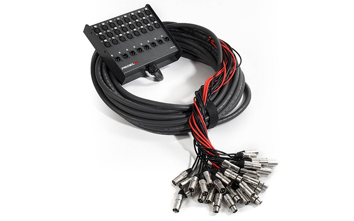 Medusa de 25 mts de largo; 24 canales XLR hembra con 8 XLR macho para retornos.