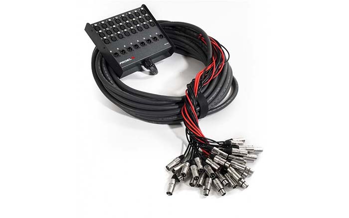 Medusa de 50 mts de largo; 24 canales XLR hembra con 8 XLR macho para retornos.