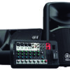 Sistema PA portátil 1100W, 125dB SPL pico @1m, con consola digital de 5 canales, subwoofer de 12 «», altavoz de arreglo lineal de 1.5″» x 10, entrada Bluetooth, reverb digital SPX y ecualizador de 1 botón y compresor multibanda para la salida master.